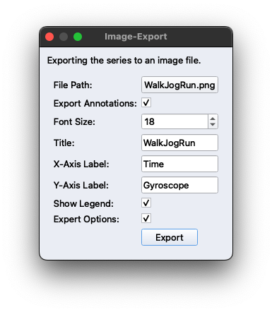 Als letzten Schritt exportieren wir die Walk-Aktivität mit den annotierten Mustern als Bild, um es bspw. in Präsentationen einzubinden oder zur Dokumentation zu speichern. Wir können ebenfalls die Zeitpunkte der Muster für weitere Verarbeitungsschritte exportieren.
