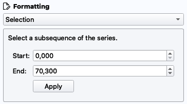 Zuerst wählen wir im SeriesExplorer eine der 3 Aktivitäten aus, um darin ähnliche Strukturen zu finden. Dazu erstellen eine neue Layer und wählen das „Selection“ Tool aus. Wir setzen das Ende des Intervalls auf das des ersten Segments und klicken „Apply“, um die Walk-Aktivität auszuwählen.